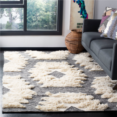 [US] Safavieh kenya hand made area rug black / ivory bohemian style non-shedding