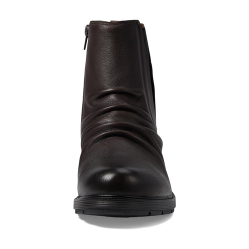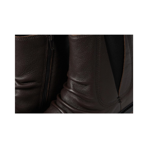 Step out in style every day by wearing Clarks Hearth Rose boots. The leather upper with fabric lining makes it stylish from the outside and comfortable from the inside. The round-toe boots have a wrinkled effect for styling. The calf-high shaft, zip closure, and heel pull tabs make it super convenient to put on.