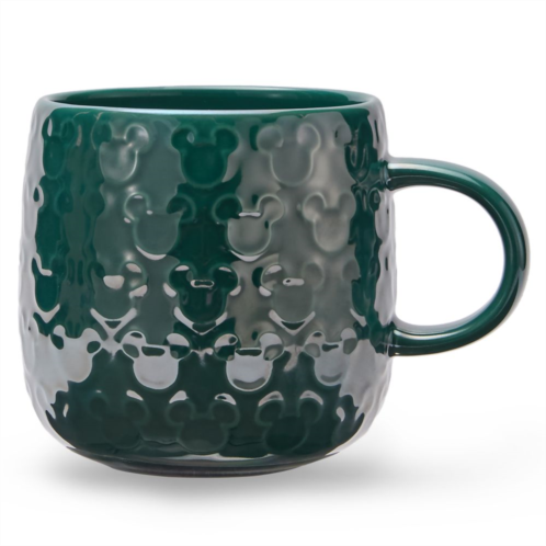 Slip out of suspended animation each morning with a sip and a smile from this trendy teal coffee mug. An allover bas relief pattern of Mickey Mouse icons gives it an elegant texture and the high gloss glaze provides an extra touch of class. Match with our rose Minnie icon mug, sold separately.