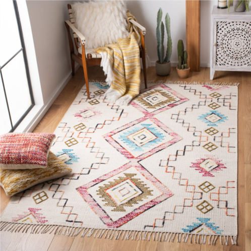 [US] Safavieh kilim flat weave area rug ivory / pink bohemian style easy care