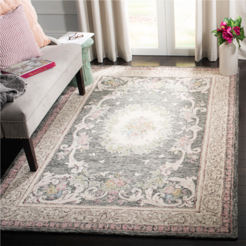 [US] Safavieh aubusson hand made area rug ivory / charcoal traditional style non-shedding