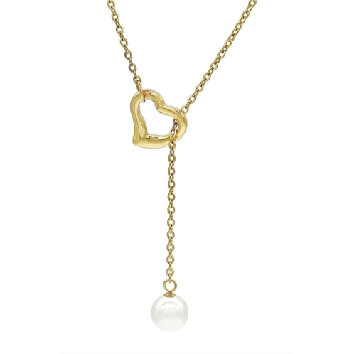 [US] Liv Oliver 18k gold open heart pearl lariat necklace
