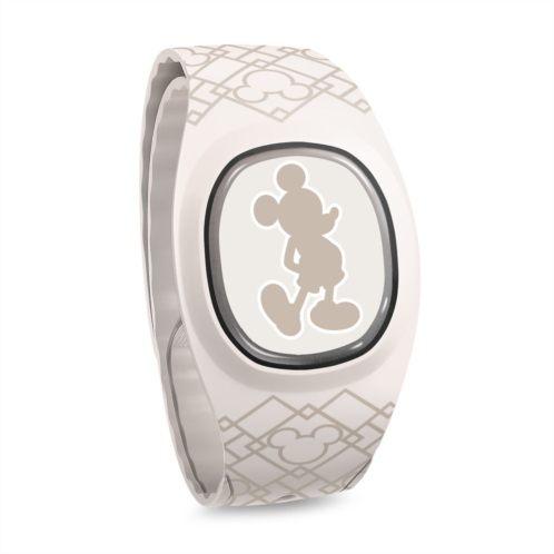 MagicBand+ lets you engage in Disney experiences like never before as it reacts to select park interactions with lighting effects and gesture recognition. This design features a geometric patterned strap with Mickey icons, plus coordinating tappable icon with standing Mickey silhouette.