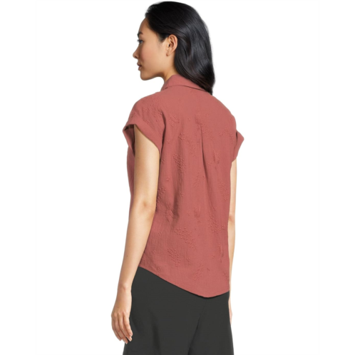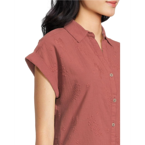 - The Royal Robbins Oasis Short Sleeve shirt is perfect for days at base camp and everyday adventures. Its lightweight, airy cotton fabric is responsibly farmed using lower-impact practices than conventional cotton farming and is naturally soft, breathable, and durable. The buttoned front closure ensures easy wear. This button-down shirt is designed with short sleeves, a collared neckline, and a shirttail hem. Its floral embroidery details add to its style.