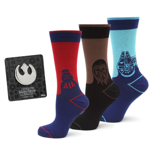 - Set includes three pairs of socks and a lapel pin in aStar Warsgift box