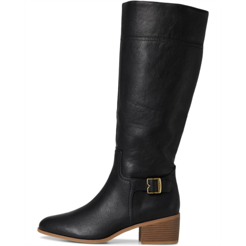 Riding boots for women designed with innovative comfort. Crafted from a faux leather upper, these boots offer an inside zipper for a secure fit, iconic buckle detailing, stitch accents, and a stacked heel.