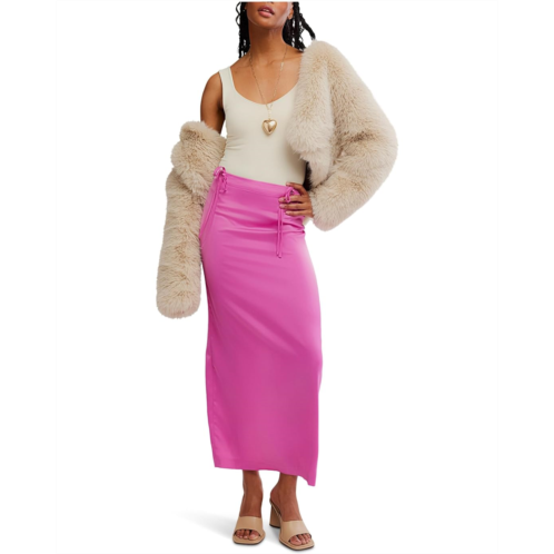 - Master the moment: The Free People Rosetto Column Skirt brings instant elegance, making every daily step feel like a statement. This below-the-knee beauty features a high-rise fit that flatters every silhouette, paired with a sophisticated column style that elongates your look. The subtle slit at the back ensures ease of movement while adding a touch of allure, and the elasticized waistband guarantees all-day comfort without compromising style. Crafted from luxuriously satiny fabric, it glides gracefully with every step, making it perfect for brunch dates, office glam, or evening soirees. The delicate bow ties at the hips add a feminine flourish, transforming a classic design into a statement of effortless chic.