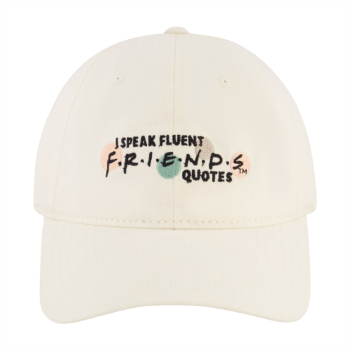 Immerse yourself in the world of Friends with our WB Friends 'I Speak Fluent Friends Quotes' Embroidery Dad Cap. Wear it proudly, quoting your favorite lines or sparking conversations about the hilarious moments that made Friends a cultural phenomenon. This is not just a cap; it's your passport to the world of Friends where every quote is a cherished memory!-Officially licensed Warner Brothers Friends Baseball Hat-Adjustable / Metal Antique Silver Slider-Curved Brim with stitching-Unconstructed 6 panel-Material - 100% cotton-Dimension - 4.5H X 8W X10D inches 0.25 lbs-Imported-This product may contain a chemical known by the state of California to cause cancer, birth defects, or other reproductive harm. www.p65warnings.ca.gov
