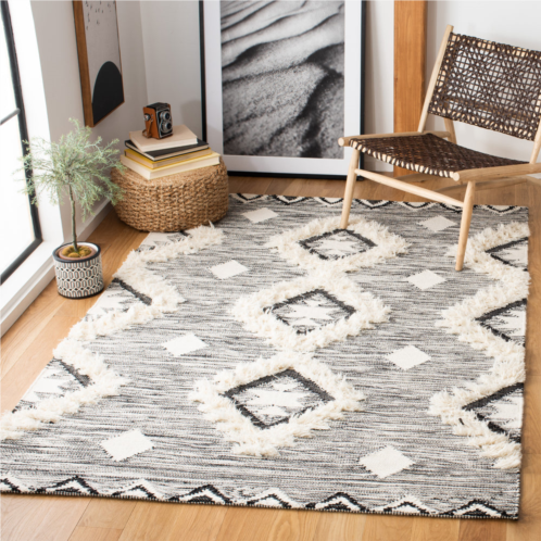 [US] Safavieh kenya hand made area rug black / ivory bohemian style non-shedding