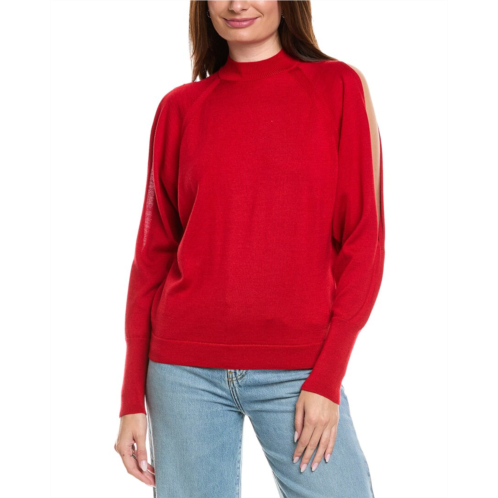 [US] Lafayette 148 New York cold-shoulder mock neck wool & cashmere-blend sweater