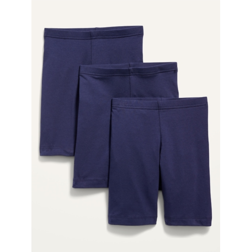 - Pack includes 3 pairs of long jersey biker shorts, each in a different color, print or pattern.