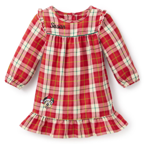 [US] Disney Santa Minnie Mouse Plaid Holiday Nightshirt for Girls Personalized