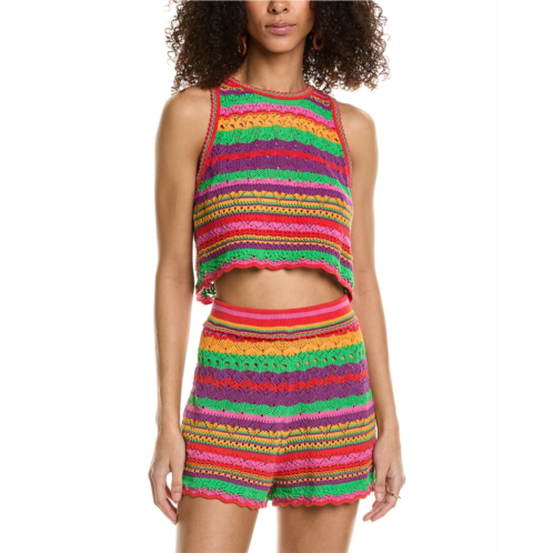 Introducing the ba&sh Sweater, a vibrant and stylish addition to your wardrobe. This Parisian-inspired piece exudes joy with its multicolor design and intricate crocheted details. The sweater features a flattering silhouette, measuring approximately 16 inches from shoulder to hem. The button back adds a unique touch, while the 100% cotton material ensures comfort and quality. Hand wash recommended. Imported. Model is 5'10 and is wearing a size 1/S. Please note that measurements may vary slightly by size. Elevate your look with this chic and playful sweater from ba&sh.