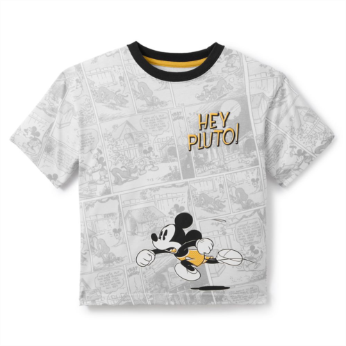 With this fun tee, they won't know whether to read it or wear it! Mickey and Pluto are featured on the front and back, as well as the allover comic strip print. There's a ''Hey Pluto!'' shout out on the front chest while the contrasting black collar completes the story!