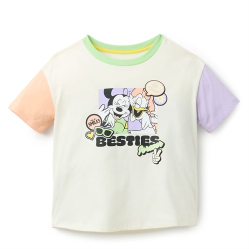 Besties Minnie and Daisy are all smiles as they pose for snapshot on the front of this super cute tee. Different pastel colors on the sleeves and collar make this a top to brighten any occasion, and with the pair ''full of smiles,'' your young one will light up everywhere they go!