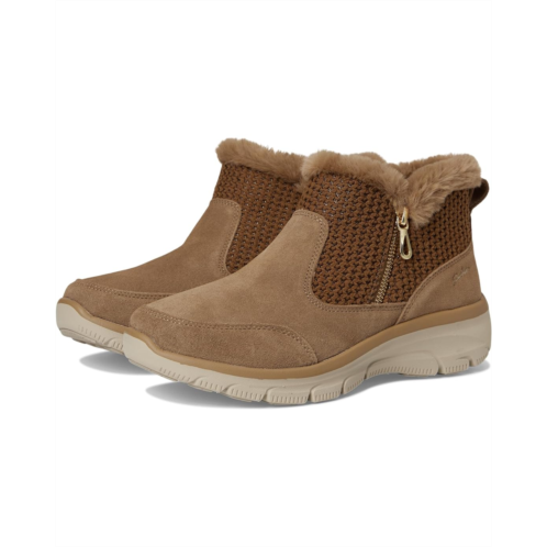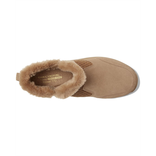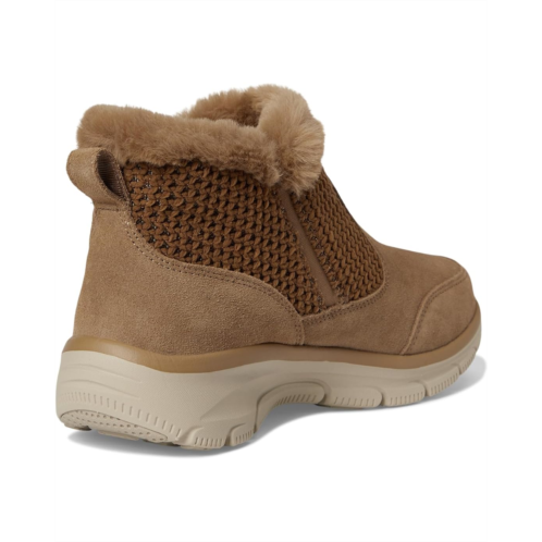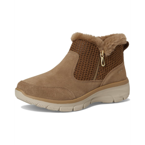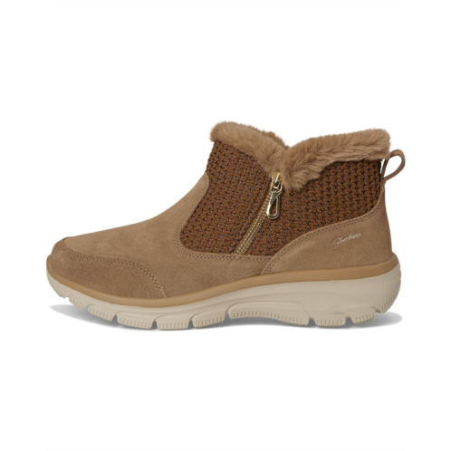 Style that feels like a hug, SKECHERS Easy Going - Gentle Fall. Designed to keep you warm and on-trend, this ankle-high beauty features a soft suede and sweater knit upper accented with a plush faux-fur trim that screams cozy season goals. The zippered side closure makes slipping in and out a breeze, while the moc toe and wedge heel add just the right touch of laid-back sophistication. Inside, the SKECHERS Air-Cooled Memory Foam cushioned insole hugs your feet in unmatched comfort, and the durable rubber outsole ensures grip with every step.