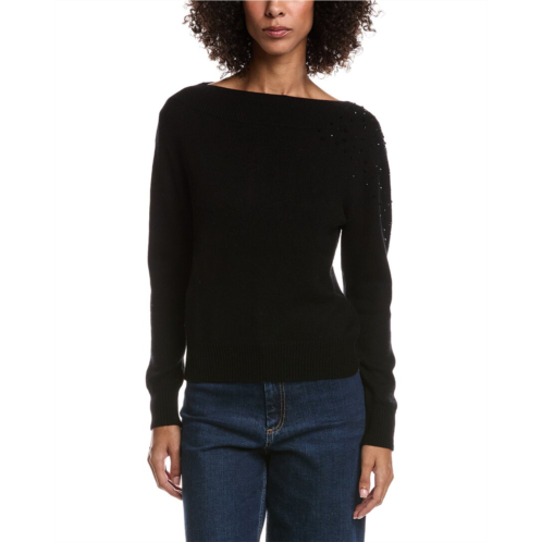 [US] Forte Cashmere crystal cluster off shoulder wool & cashmere-blend sweater