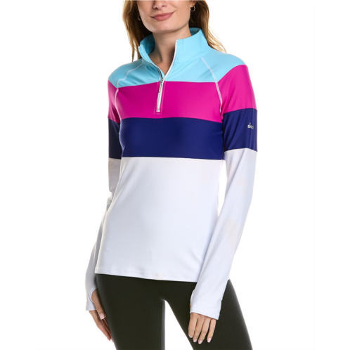 Introducing the SKEA Callie Pullover, a stylish and versatile addition to your winter wardrobe. This pullover in a white and Atlantic blue combo features a mock neck, raglan sleeves, and thumbholes for added warmth and comfort. The 1/4-zip closure adds a modern touch to this classic design. Made from 80% polyester and 20% spandex, this pullover is machine washable for easy care. Whether you're hitting the ski slopes or simply staying cozy on a chilly day, the SKEA Callie Pullover is the perfect choice.