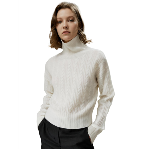 [US] LILYSILK womens classic cable knit turtleneck sweater