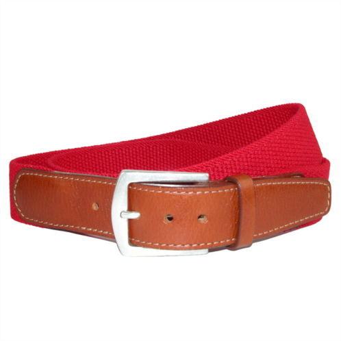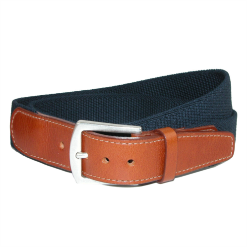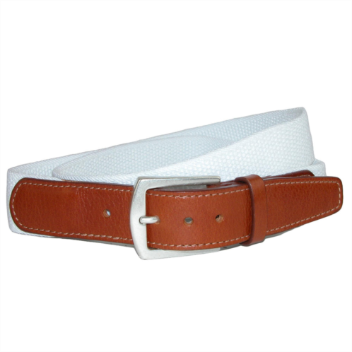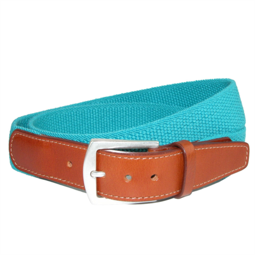 Durable woven cotton creates a sharp belt that can go from casual to dress casual. Looks great with jeans or slacks with its sterling finish solid brass buckle. Genuine Full Grain Vegetable Dyed Leather tabs and matching keeper finish off the classic look of this belt.