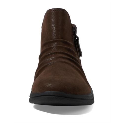 Sleek and slouchy, the Clarks Breeze Range Boots are exclusively designed to give an instant boost to your street or dressy style without letting you give up comfort. The shoes feature an ankle-high silhouette with a closed round toe and are secured with a zippered closure for easy on and off. The synthetic upper displays a ruched detailing for added style while the Cushion Soft technology on the foam footbed ensures comfort with every step.