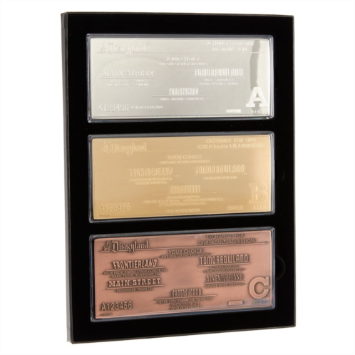 You've got a ticket to ride back to Disneyland's opening day with this 70th Anniversary replica set of A, B and C tickets in minted metal and encased in acrylic sleeves. All three matched numbered, limited edition tickets are presented in a handsome display box. Revisit Walt's original vision forMain Street U.S.A.,Fantasyland,Tomorrowland,FrontierlandandAdventurelandwith this keepsake collectible from The Happiest Place on Earth.