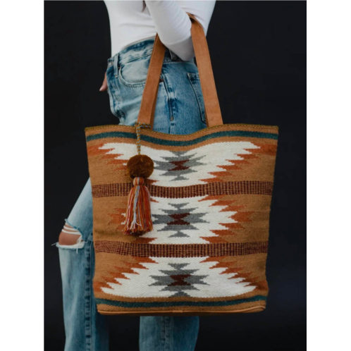 [US] Panache Apparel aztec tote bag in brown rust and teal