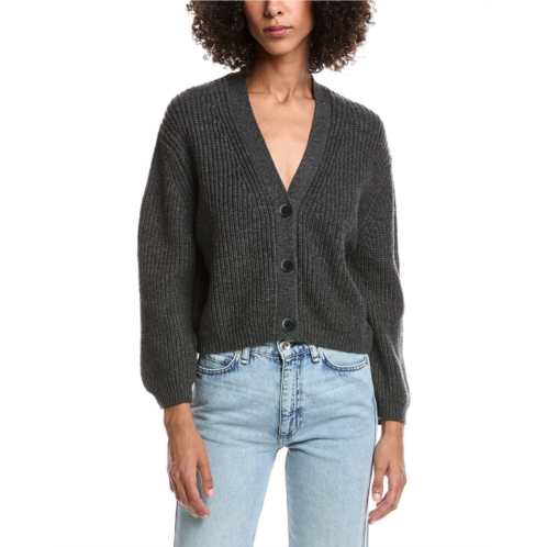 [US] Forte Cashmere wool & cashmere-blend short rib v-neck button cardigan