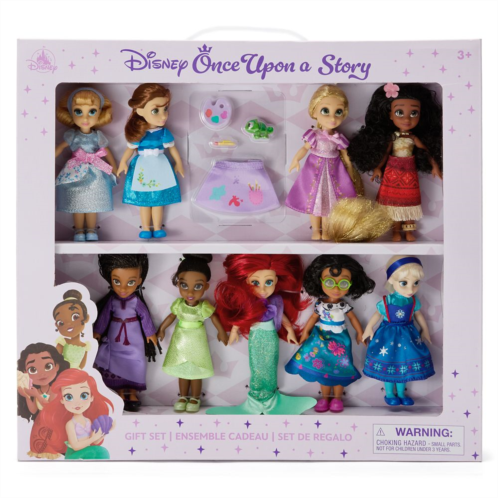 The Disney Once Upon a Story collection celebrates the power of imagination and storytelling with beloved characters. Magical adventures await with the stories you create. Wish upon a star and discover nine classic characters together in one gloriously gift-boxed mini doll collection. Fantasies come true with this set of all-time favorites, reimagined as toddlers for our special assortment.