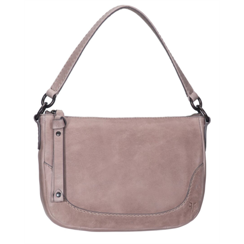 Introducing the Frye Melissa Leather Crossbody, a timeless and versatile addition to your handbag collection. Crafted from genuine leather in a rich Mushroom hue, this crossbody features dark antique brass-tone hardware for a touch of vintage charm. The interior is thoughtfully designed with front double organizational slip pockets and a back zip pocket for easy storage. The top handles have a 7-inch drop for comfortable carrying, and the zip closure keeps your essentials secure. This stylish crossbody measures 11 inches wide, 7.75 inches high, and 3 inches deep, making it the perfect everyday accessory. Imported with authentic heritage styling and Americana roots, the Frye Melissa Leather Crossbody is a must-have for any woman who appreciates quality craftsmanship and classic design. Please note that all measurements are approximate and may vary slightly.
