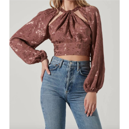 [US] ASTR betsy floral cutout long sleeve top in brown jacquard