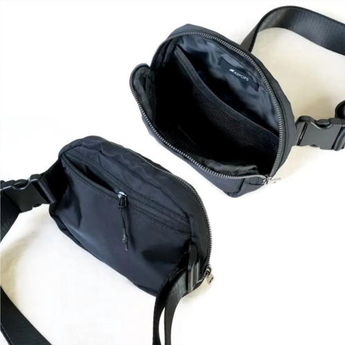 This crossbody bag will be your go-to bag of the season.Elevate your accessory game with the Nylon Crossbody Sling Bag by 42POPS, a stylish and versatile piece in sleek black. This bag comes with five interchangeable straps, including a distinctive striped accent strap for added flair, each measuring 14 inches. Its compact dimensions are 8 x 5.5 x 1 inches, and it features an adjustable belt that extends from 22 to 40 inches, allowing for a perfect fit. Outfitted for both function and fashion, this bag is ready to complement any ensemble.