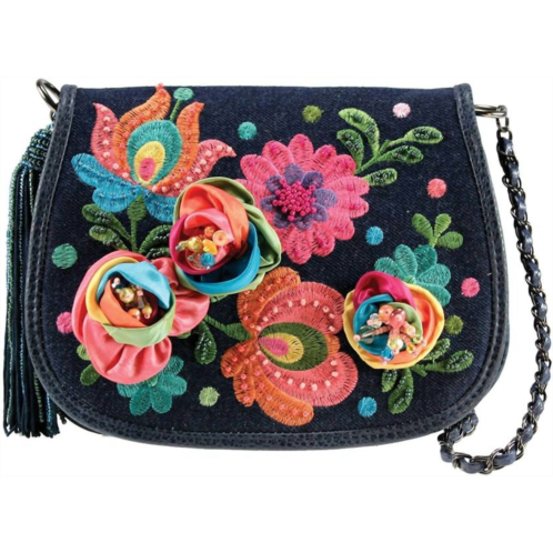 [US] Mary Frances darling embroidered flowers denim mini crossbody purse in multi