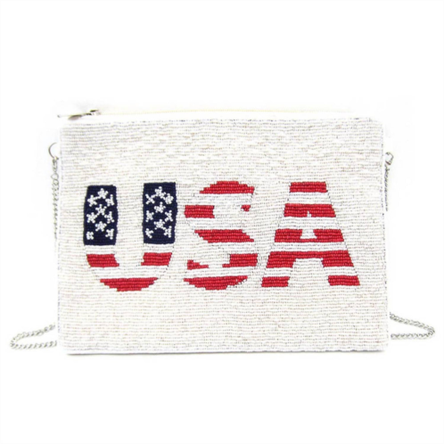 [US] Fashion CITY usa flag seed beaded clutch crossbody bag in white