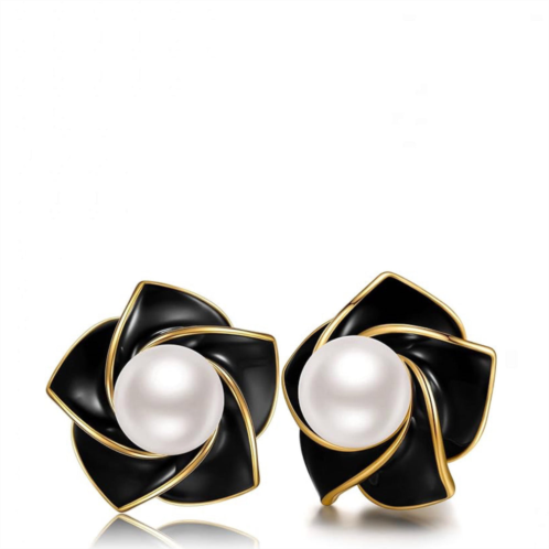 [US] Liv Oliver 18k gold white pearl & black enamel post earrings