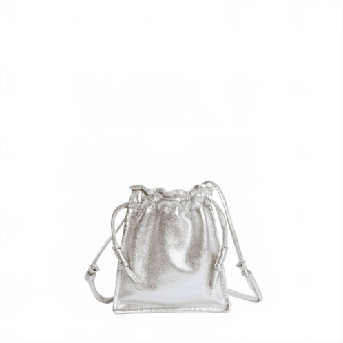 [US] Lemiz womens mini bowie drawstring crossbody leather bag in silver