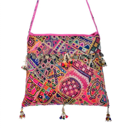 This crossbody bag will be your go-to bag of the season.Elevate your accessory game with the Nikita Banjara Crossbody Bag by Guadalupe Design, a stylish embodiment of elegance in pink. This bag is adorned with intricate coin motifs and detailed stitching, providing both a unique look and durability. Measuring 18 inches in height and 17 inches in width, it is comfortably carried thanks to a 20-inch shoulder strap. With a vibrant pink lining, this crossbody bag is your versatile companion for any outing.