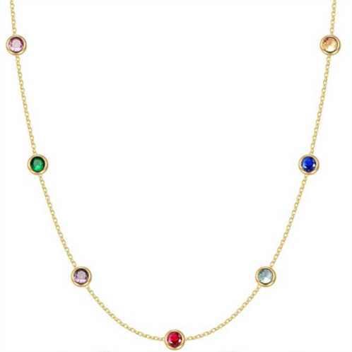 This 18k Gold Plated Multi Color Station Necklace from Liv Oliver Jewelry is a stunning piece of jewelry. Crafted from 18k Gold Plated sterling silver, this necklace features a multi-chain design with 4mm CZ stones. The length of the necklace is 16 inches with a 2 inch extension.