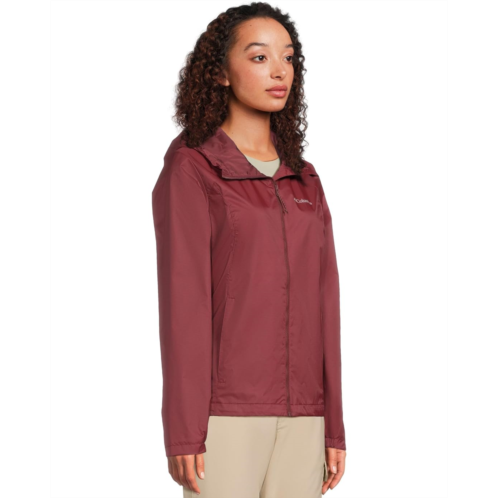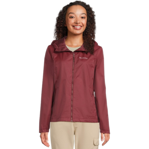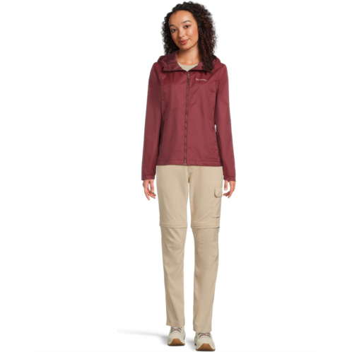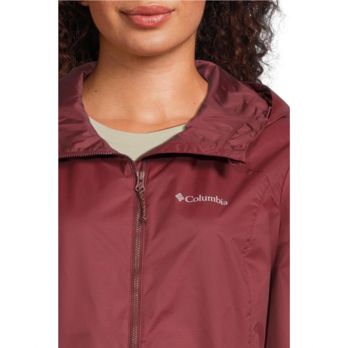 - Layer up your style wearing the Columbia Scattered Showers Jacket. This mesh lined jacket features collared neckline, long sleeves, adjustable drawcord hood, zippered front closure, chin guard, zippered side hand pockets, and brand logo on the left chest.