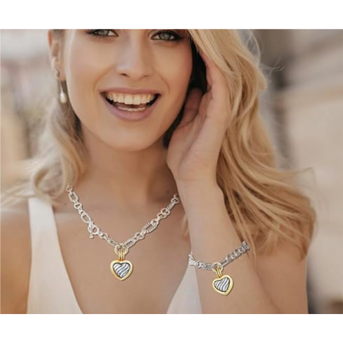 This bracelet is a great gift for any occasion. Its classic design and luxurious materials make it a timeless piece that will be cherished for years to come. Whether you're looking for a special gift or a timeless accessory for yourself, this 18k Gold Two Tone Textured Link Love Charm Bracelet is the perfect choice.