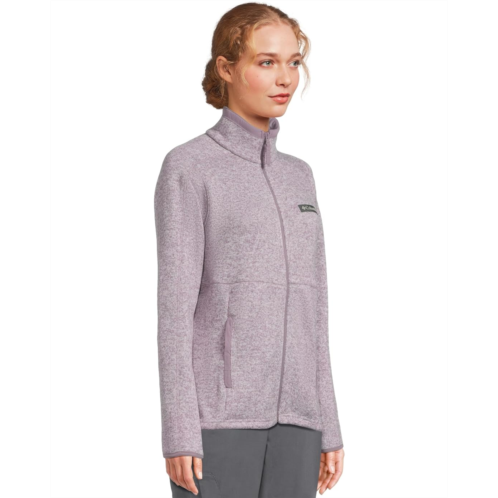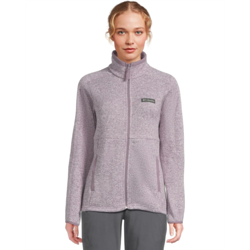 - Keep yourself comfortable and cozy wearing Columbia Sweater Weather Full Zip II Pullover. The regular-fit pullover features a high standing collar with stretch binding at the collar, a full center-front zip closure, long sleeves with stretch binding at the cuffs, and zippered hand pockets. The brand logo detail at the left chest adds authenticity to the look and the adjustable hem with drawcord ensures maximum warmth.