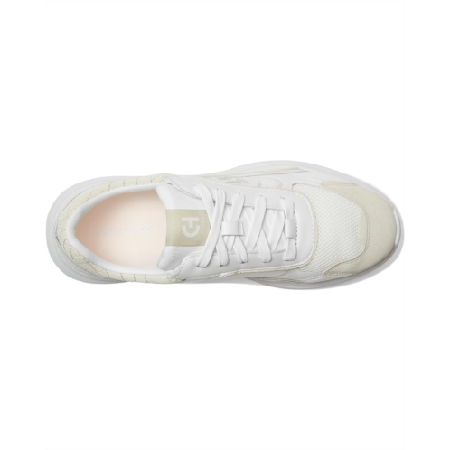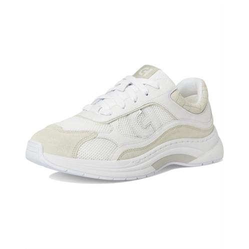 The Cole Haan Grandpro Eleeana Runners are Modern lifestyle runner shoes in a combination of leather, suede, and mesh upper with the CH logo and leather overlay throughout for added craft. These shoes are finished with signature woven stitch collar detail for added comfort. They are crafted with an EVA insole and polyester lining. These lace-up shoes feature an EVA midsole with a geometric rubber outsole, providing added traction and durability.