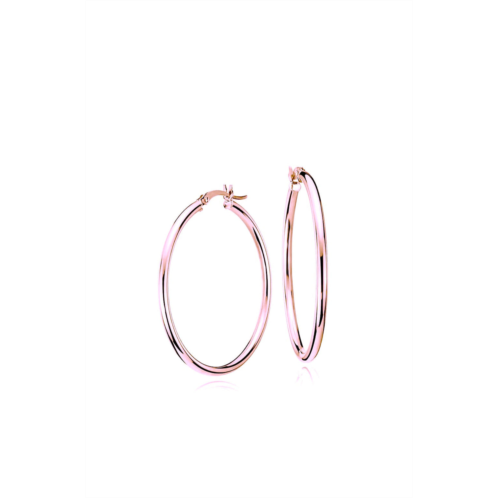 These 18K Rose Gold Hoop Earrings from Liv Oliver Jewelry are a timeless classic. Crafted from 18k rose gold plated material, these earrings measure 30mm in diameter. They are the perfect accessory for any outfit, and will add a touch of elegance to any look.