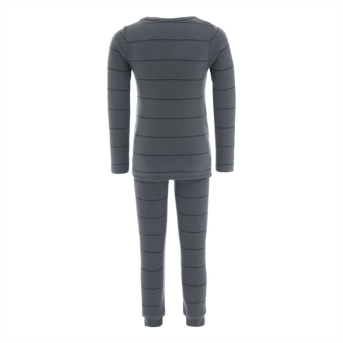 Green seamossstripedgender neutral long sleeve outfit sets for kids and babies from BANBLU, featuring a long sleeve green seamosstop withforest green stripesand matching pants.