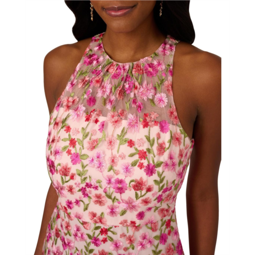 [US] Womens Adrianna Papell Floral Emb Halter Midi Dress