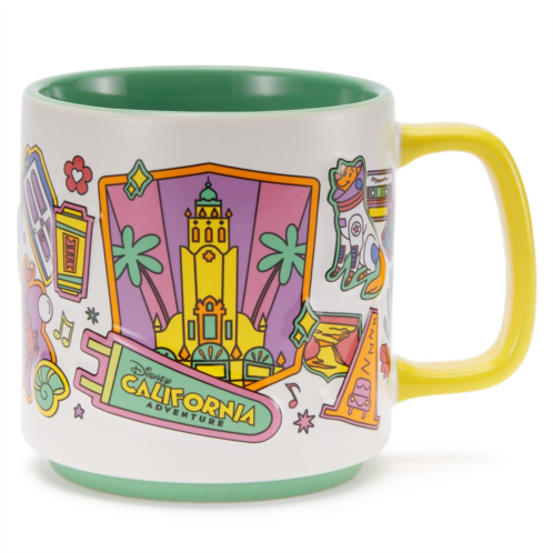 Reawaken memories of Disney California Adventure with every sip from this souvenir mug by Starbucks. The ceramic coffee cup surface has a dimensional design featuring popular ''DCA'' landmarks, characters and symbols. With its bright graphics, contrasting interior and handle, it's a colorful reminder of yourDisneylandResort visit.