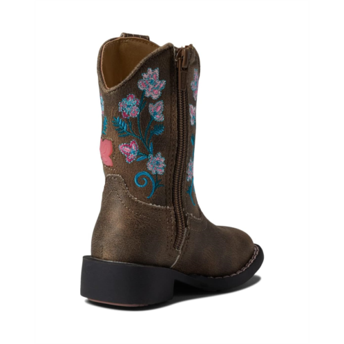 A beautiful floral detailing adorns the Roper Kids Dazzle Floral Lights Boots. This pair comes with pull loop on the side for easy wear.