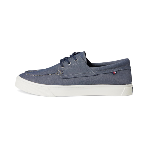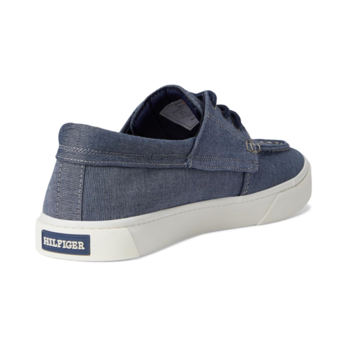 The Tommy Hilfiger Relenn shoes combine boat shoe and sneaker elements. Together they casualize the traditional boat shoe look. They also have a cushioned memory foam insole to add comfort for wear. These lace-up boat shoes are made of a denim upper, foam footbed, and polyester lining.