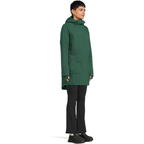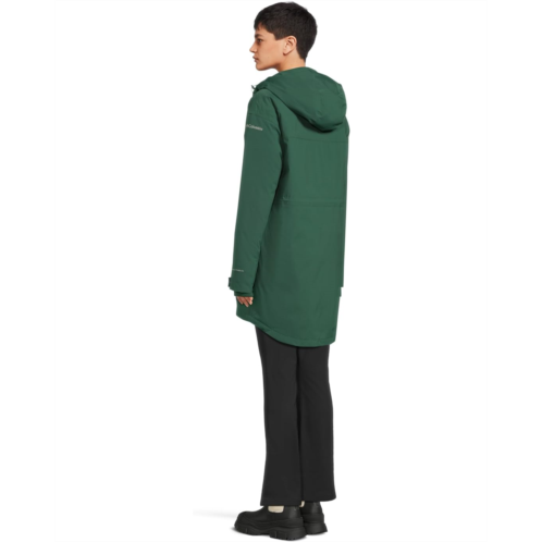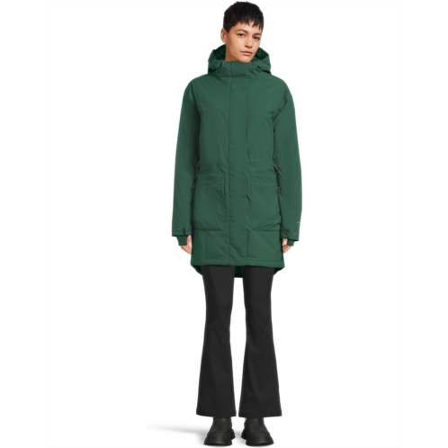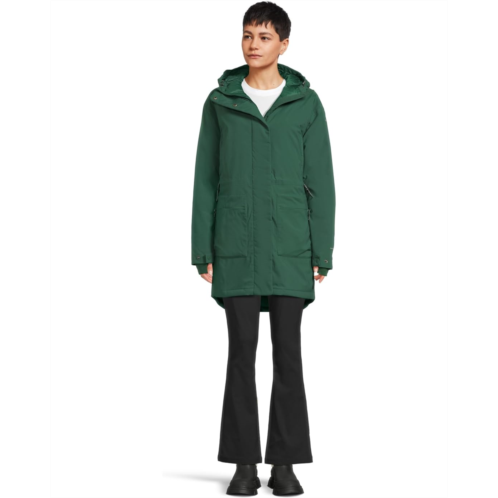 - You'll be ready for the cold weather with the Columbia Harmony Falls Parka. Featuring a drawcord adjustable hood, front zipper closure with storm flap, long sleeves with snap closure cuffs, thumbholes, and a droptail hemline.