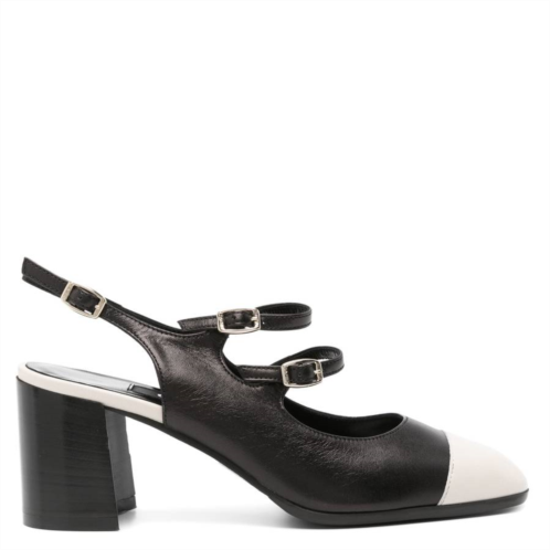 Carel Ladies Heels. SKU - 332466-BLACK/BEIGE. Color - Black/Beige. Carel Ladies Black / Beige Block Heel Sandals. Crafted from leather, this pair of pumps features a color-block panel design, an almond toe, and a contrasting toe cap. They include a logo-embossed insole, leather lining, and an ankle strap with a buckle. Two additional straps with buckles complete the design, set on a 60mm square midi block heel. Made in Italy.